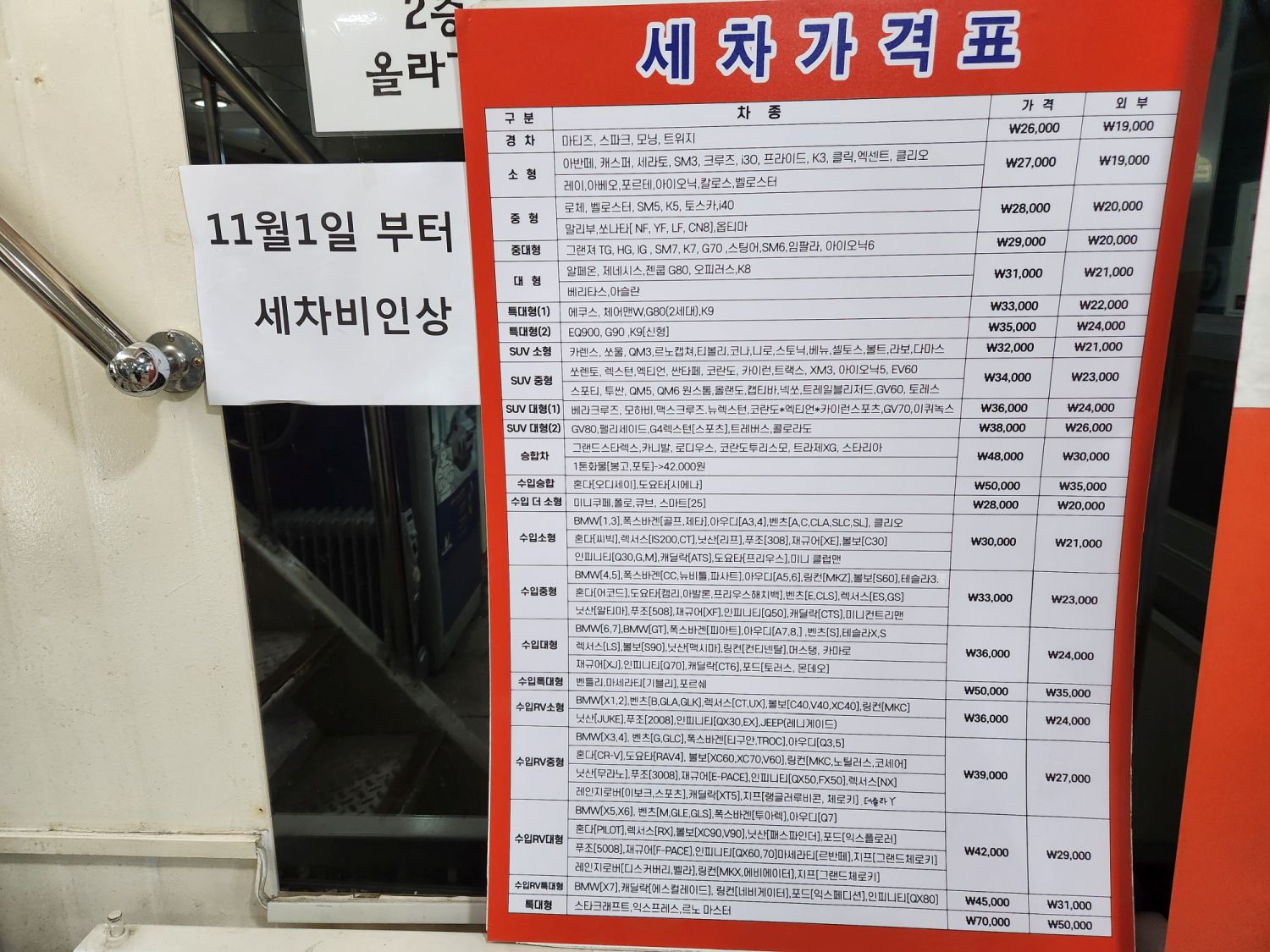 오랜만에 갔더니 세차 가격이 올랐더라고요! ㅠㅠ
