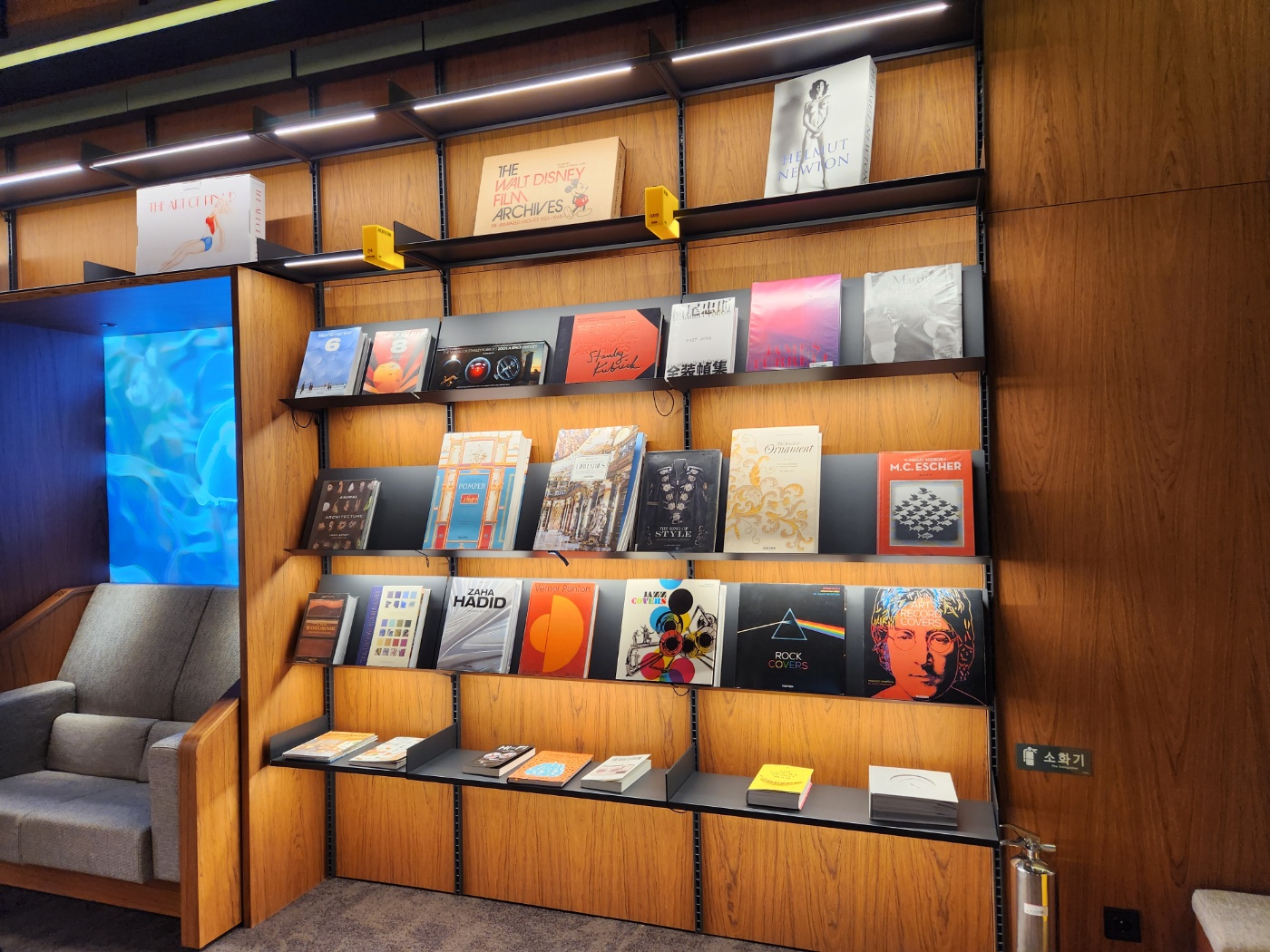 내려가면 가장 먼저 보이는, 그리고 홀좌석에 앉아서도 보이는 메인 책들입니다.
